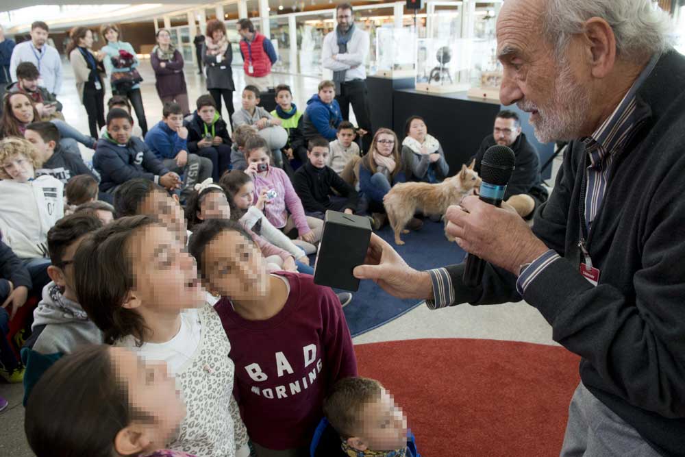 Niños observan muy interesados una exhibición científica en el Parque de las Ciencias