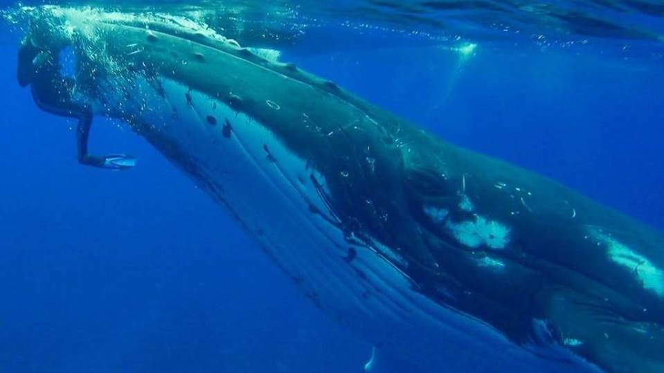 La ballena hace todo lo posible para salvar la vida a la bióloga