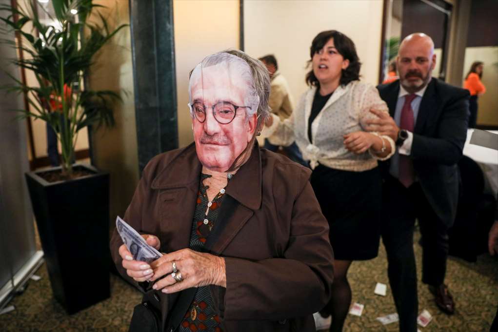 Así lo aseguran en un manifiesto conjunto las decenas de organizaciones que han puesto en marcha la acción de hoy para lanzar un mensaje paraguas común: “Así no hay quien viva”. Los activistas han utilizado herramientas sonoras (pitidos) para generar ruido en el interior del recinto interrumpiendo el acto, así como caretas, billetes de papel, humo y olores desagradables.