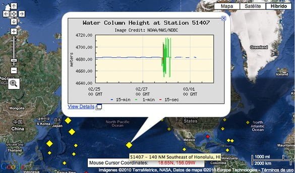 Anoche venía escuchando las noticias en la radio y me sorprendió lo que estaban comentando y que desconocía: existe una red de sensores en el océano Pacífico que conforman el «sistema de detección de tsunamis del Pacífico«, «Pacific Tsunami Warning Center» en inglés, cuyas siglas son PTWC. Este sistema es operado por la agencia NOAA de Estados Unidos y consiste en una serie de sensores de presión situados en el lecho marino, denominados DART Mooring System.
