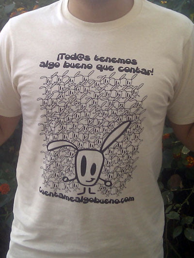 La primera camiseta de Cuentamealgobueno recién salida del horno