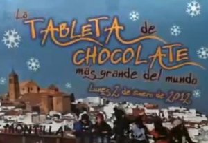 Si el año pasado Rafa, Redactor de Córdoba nos presentaba por Navidad el Belén de Chocolate de Rute, Córdoba, este año, la vecina Montilla no ha sido menos: quinientos metros de largo por veinticinco centímetros de ancho son las medidas de la mega-tableta de chocolate que han realizado en estas fechas y que ha batido todos los récords, habiendo además aparecido en todos los medios de prensa como noticia destacada.