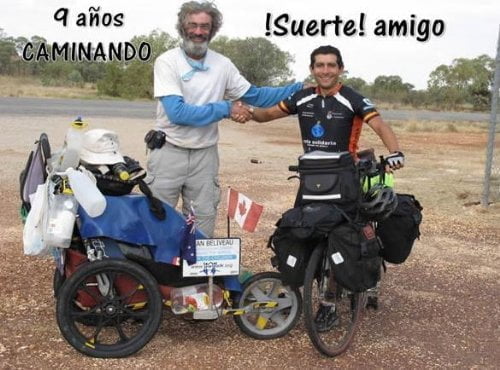 Muy interesante la siguiente foto, en la que el Alcalde Solidario se encuentra en Australia con Jean Béliveau, el canadiense que dio la vuela al mundo por la Paz y por los niños durante 11 años caminando.