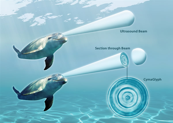 El CymaScope puede simplificar los complejos sonidos que emite un delfín al convertirlos en «palabras gráficas» a las que llaman «CymaGlyphs»; cada imagen representa la palabra de un delfín para un objeto dado. Los delfines tienen ojos normales, pero también «ver con el sonido» y pueden, por ejemplo, emitir un sonido-imagen de un depredador a otros delfines.