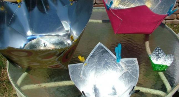 La Organización Rimstar, dedicada a difundir diversas alternativas de consumo, ha presentado recientemente una serie de hornos solares para cocinar hechos con cartón y aluminio, entre los que se encuentra el llamado «Copenhagen Solar Cooker«, un dispositivo con forma de flor de loto que sirve para calentar una olla, que es portátil y de mínimo costo.