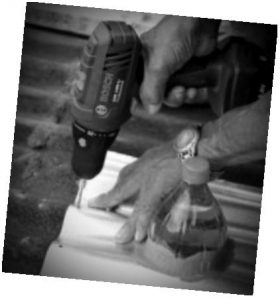 - Usar papel de lija para rayar la superficie alrededor de la parte superior a la tercera porción de la botella, donde la hoja de GI se colocará, para permitir que el epoxi o caucho sellador se adhiera mejor.