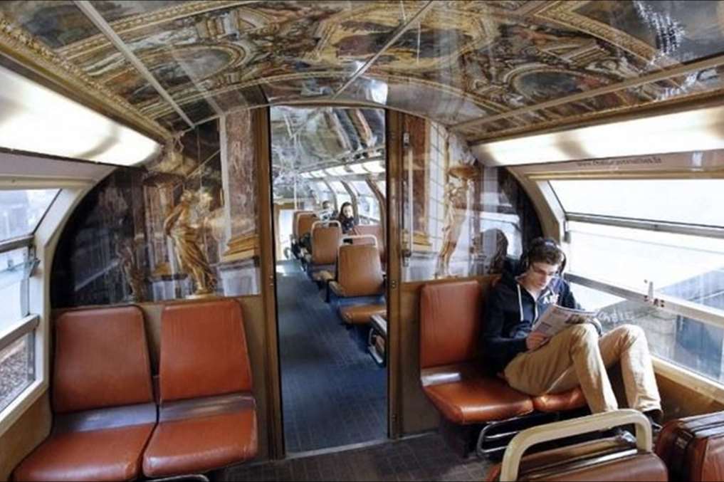 Se trata de un tren urbano perteneciente al ramal de una de las líneas más largas de la ciudad, una ruta bien conocida por los turistas que llegan cada año. El tren, revestido de imágenes idénticas a determinados rincones de Versalles, como El Salón de los Espejos, la habitación de María Antonieta en el Petiti Trianon, o el Templo del Amor, prepara al visitante a lo que podrá ver más tarde en vivo y en directo: