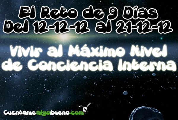Ayer, con la fecha del 12-12-12, propusimos un reto de 9 días desde el 12-12-12 hasta el 21-12-12, en el que proponemos a todos nuestros lectores que vivan durante estos nueve días al Máximo Nivel de Conciencia Interna. Hemos preparado el siguiente vídeo en el que resumimos el Reto: