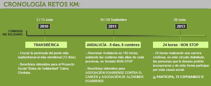 La organización de KM Solidario ha decidido dividir este reto en secciones, con la intención de indicar en qué momento horario se encuentra el deportista y cúal de las modalidades deportivas ejecuta, facilitando la posibilidad a la participación.