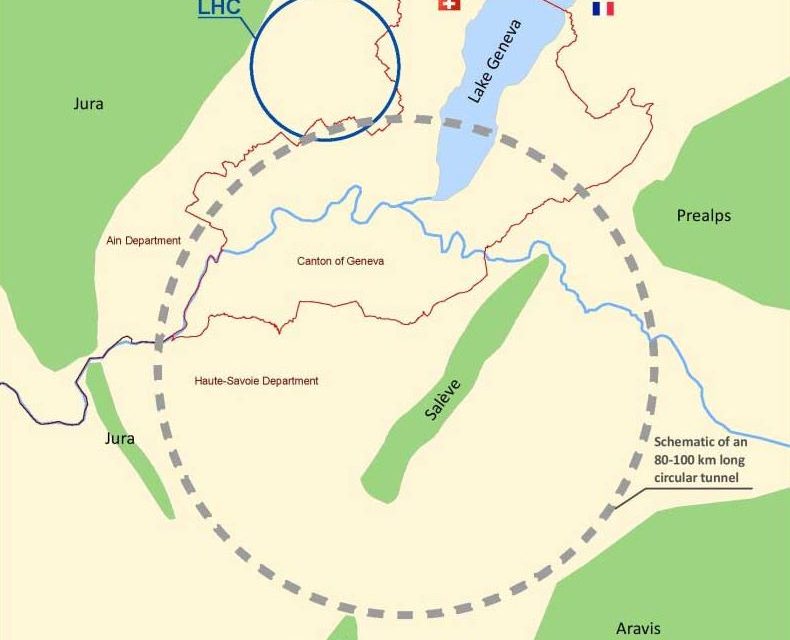 Plano del actual LHC y del futuro colisionador de partículas que será tres veces mayor que el actual