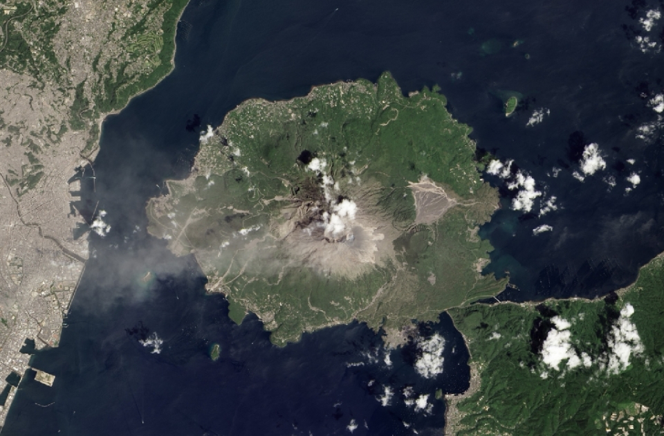 Volcán Sakura-jima. El volcán japonés Sakura-jima es uno de los más activos en el mundo, con pequeñas explosiones suelen ocurrir cada pocos días. El 18 de agosto de 2013, una gran erupción envió ceniza 6.000 metros por encima de la bahía de Kagoshima.