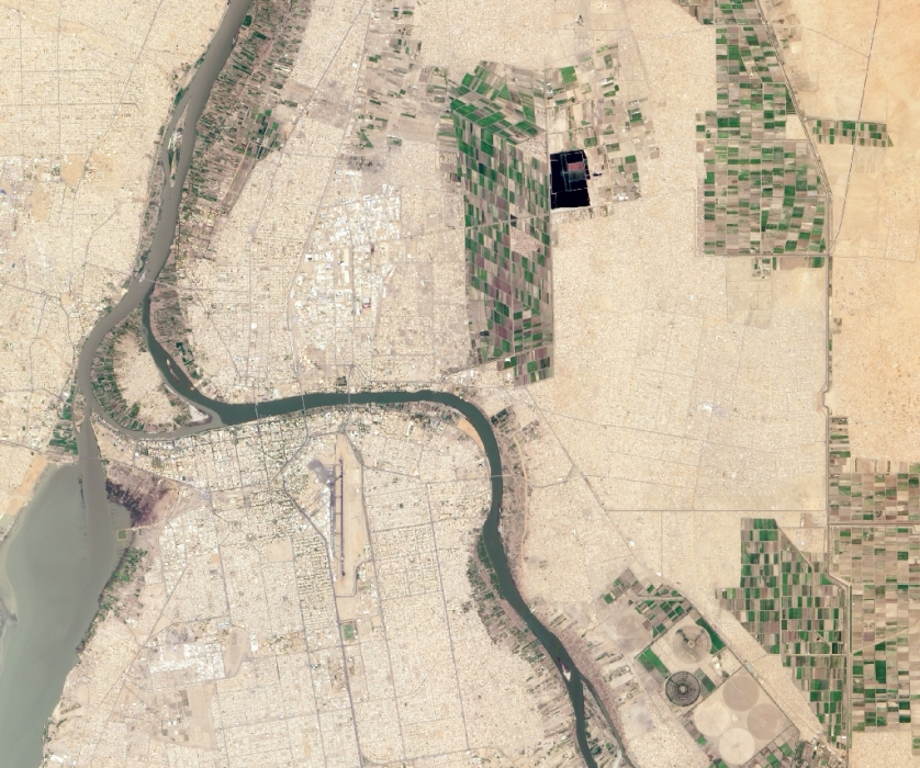 Los dos Nilos. El Nilo es el río más largo del mundo y sus principales afluentes, el Nilo Blanco y el Nilo Azul, coinciden en Jartum, Sudán.