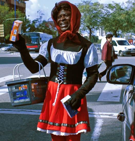 Cada día acude al semáforo vestido con originales disfraces: de cleopatra, pantera, monja, vaca, caperucita roja, torero… La imaginación de Jackson no tiene límites, siempre y cuando le ayude a cumplir su propio lema: arrancarle una sonrisa a la gente.