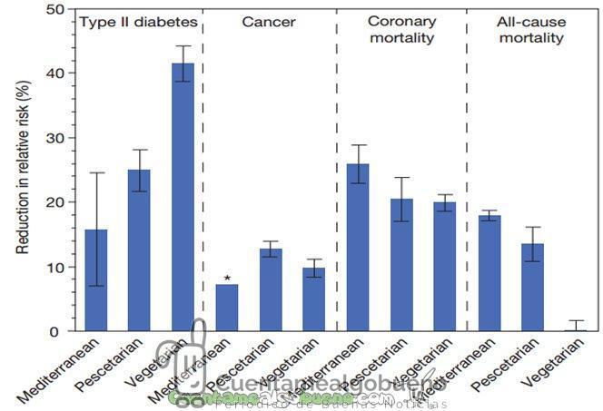 Adoptando estas dietas alternativas, se podría reducir la incidencia de la diabetes tipo II un 25%, el cáncer un 10% y la muerte por enfermedades cardíacas un 20% respecto a la dieta omnívora.
