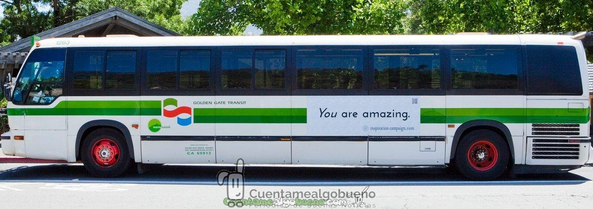 Uno de los autobuses con el mensaje "You are amazing" que recorrió las calles de San Francisco.