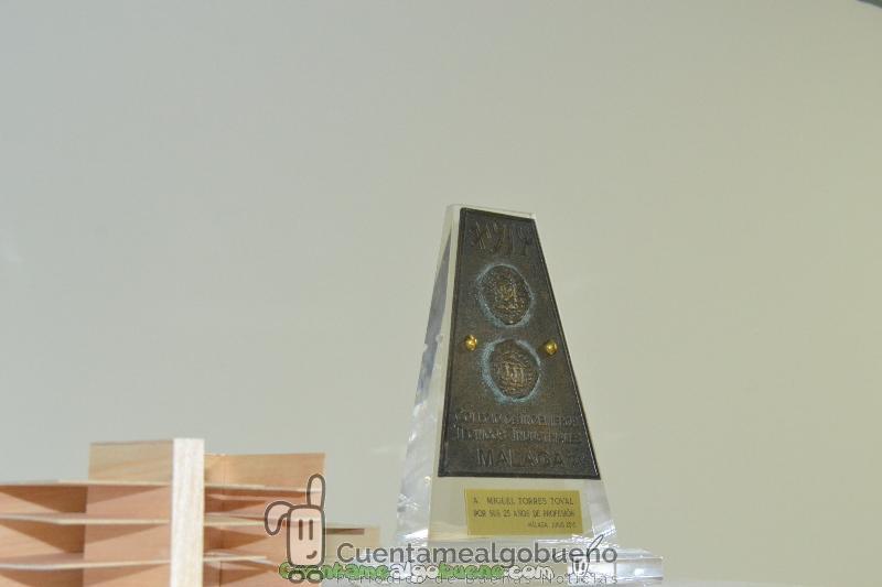 Miguel nos enseña orgullos su premio conmemorativo de los 25 años de colegiado, que lo guarda en su empresa. «Llevo 25 años colegiado como Ingeniero Técnico Industrial; mi perfil académico era formación profesional».