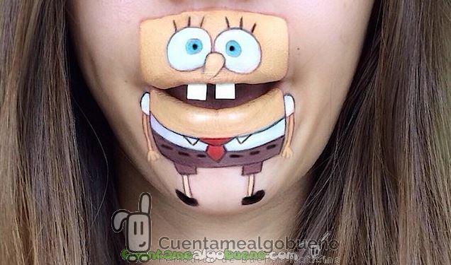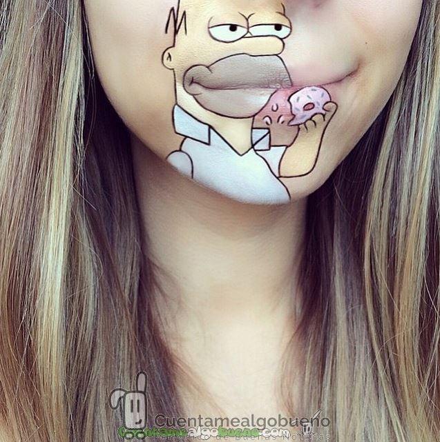 El resultado son estas divertidas fotos en las que personajes de ficción como Bob Esponja o Homer Simpson cobran vida en su rostro.