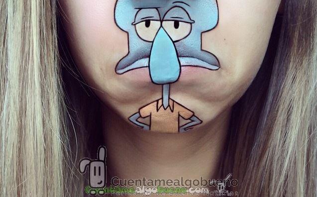 La chica ha subido a su cuenta de Instagram unas simpáticas fotos en las que de nuevo ha hecho honor a su profesión, pero en este caso, las estrellas son personajes de dibujos animados que ha pintado sobre su propio rostro.