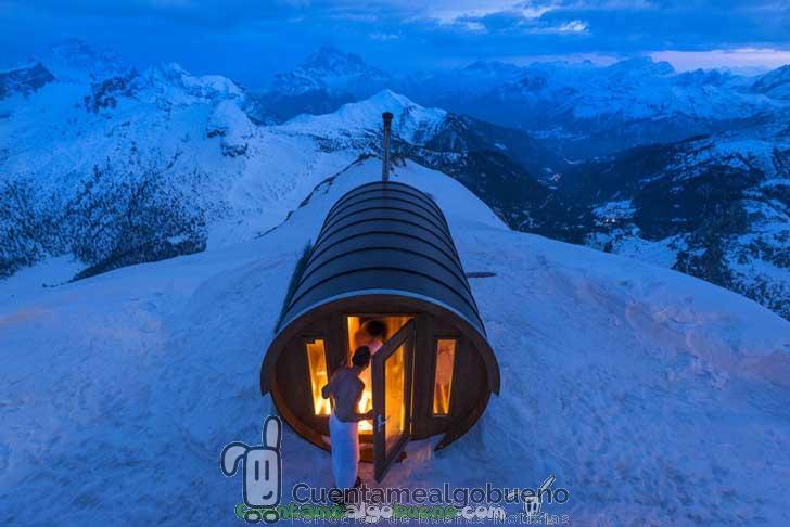 “Sauna en el cielo”. Un sauna a 2.800 metros de altura en el corazón de los Dolomitas.