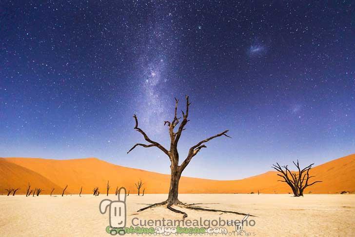 “Una noche en Deadvlei”. La luna estaba lo suficientemente brillante como para iluminar las dunas a la distancia.