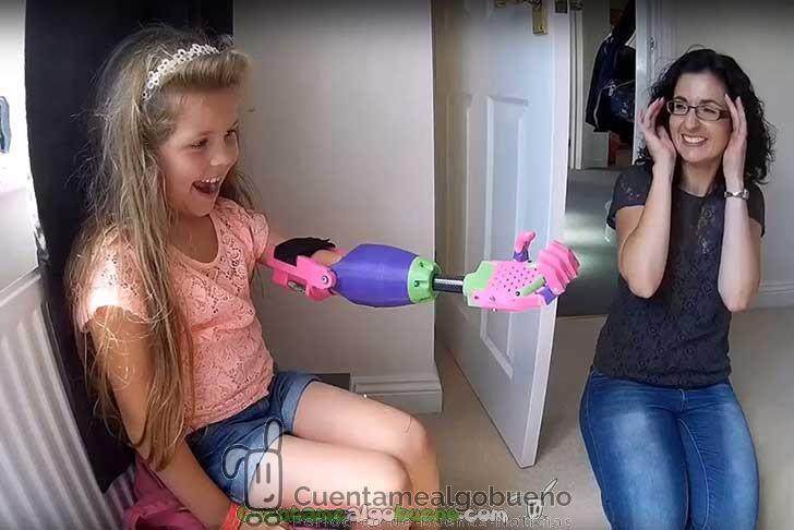 Emotiva reacción de esta pequeña que recibe una prótesis impresa en 3D