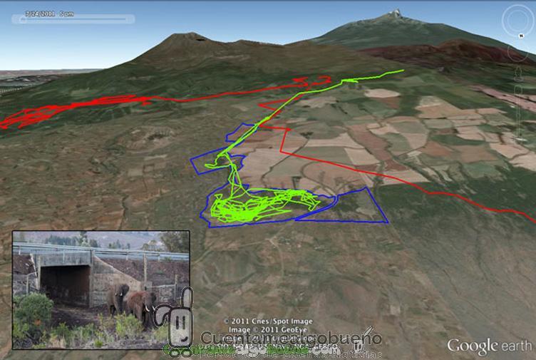 La tecnología de seguimiento se superpone en Google Earth y ayuda a entender los patrones de migración de estos paquidermos.
