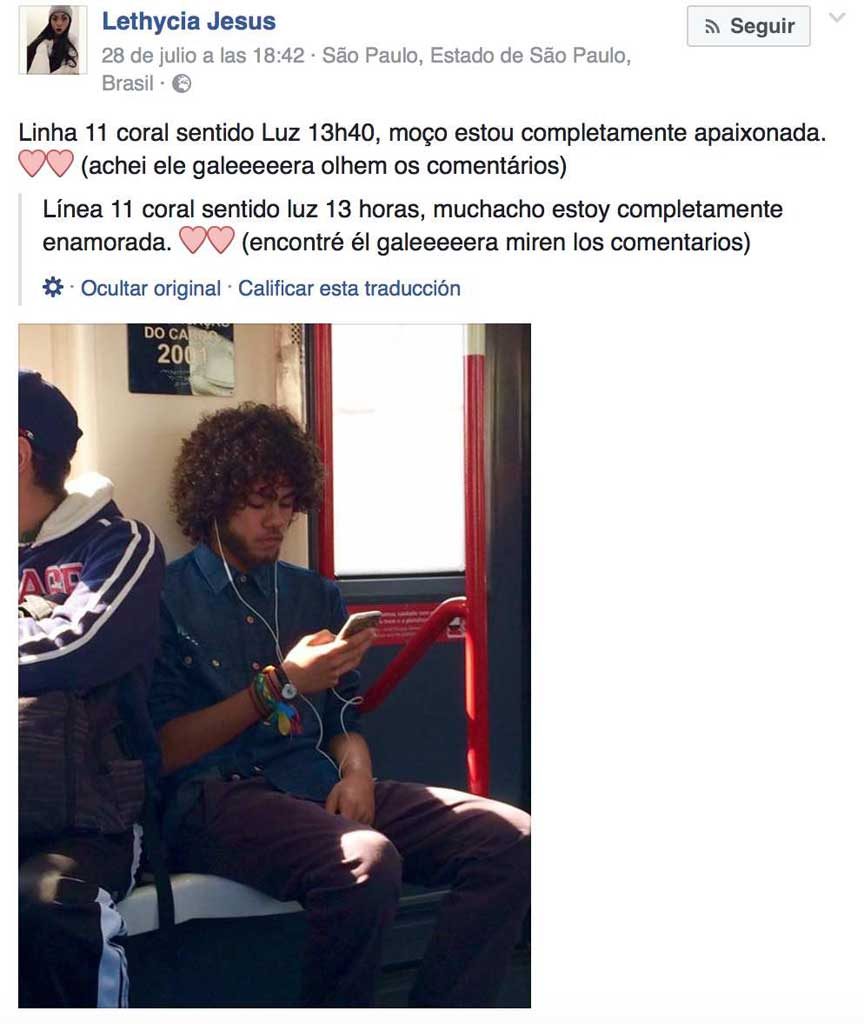 Fue durante el trayecto cuando Lethycia levantó la mirada y vio frente a ella a un chico que estaba utilizando su teléfono móvil. El flechazo fue inmediato. Seguramente, la chica sintió algo de pudor, y no se acercó a él, una escena en la que más de uno nos hemos visto alguna vez. Pero ella sí que dio un paso más, y se atrevió a publicar una foto del chico en Facebook para intentar dar con él.