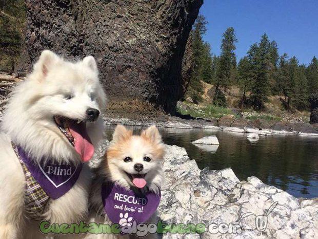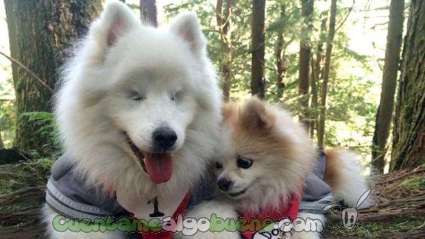 «Decidimos darle a Zen el rol de guía, y por eso les unimos en una misma correa, pero aunque les pongamos con correas separadas, se vuelven a juntar», dijo la dueña de ambos, Paulina Pérez, en una entrevista con el diario The Dodo.