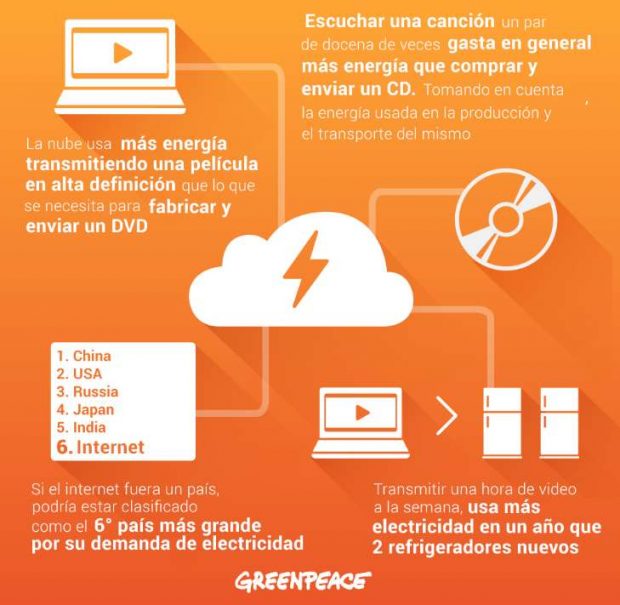 - Si Internet fuera un país, se situaría como el quinto en consumo de electricidad, según el informe de Greenpeace.