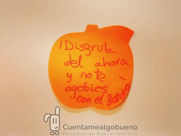 Otra de las muchas frases positivas que una de las cientos de personas que visitaron el stand de Cuentamealgobueno en la Feria Natura Málaga 2017 dejó sobre nuestro árbol de buenas noticias.