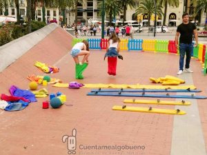 - Juegos cooperativos: cinta de tanque, paracaídas, mini-zancos, skíes cooperativos y carreras de sacos.