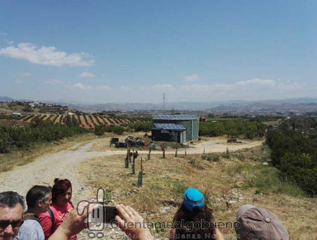 La visita finalizó con una vista a las placas solares con las que generan la electricidad para alimentar el riego y a las cajas de madera que antiguamente usaban para transportar la fruta y con las que han construido el mobiliario de la zona de recepción y eventos de la huerta.