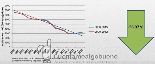 Según este I Estudio de Siniestralidad Laboral, el Índice de Incidencia de Accidentes Laborales con Baja ha descendido un 57%.
