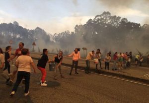 En las últimas horas hemos visto cadenas humanas de gente pasándose cubos de agua los unos a los otros, trabajando durante horas, sin descanso, sin dormir, codo con codo, para apagar el fuego.