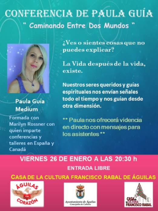 Esta tarde tendrá lugar una conferencia de la vidente Paula Guía en la Casa de la Cultura Franciso Rabal de Águilas (Murcia)