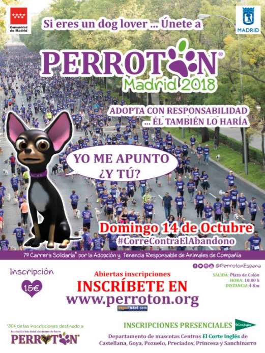 Hoy, domingo 15 de abril, se abren las inscripciones para la Perrotón Madrid 2018: 7ª Carrera Solidaria por la Adopción y Tenencia Responsable de Animales de Compañía cuya embajadora es la actriz y cantante Alejandra Botto.