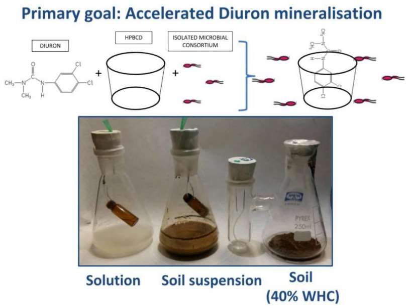 En un estudio publicado en la revista Chemosphere, los investigadores describen la técnica de biorrecuperación aplicada a través de diferentes ensayos, empleando consorcios bacterianos degradadores y ciclodextrina, una sustancia que se obtiene a partir del almidón. Los organismos vivos utilizaron el diurón como alimento, transformándolo en dióxido de carbono, agua y sales minerales.