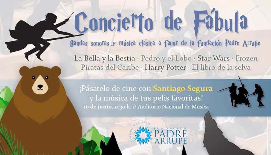Tras el éxito el pasado mes de diciembre de su tradicional Concierto de Navidad, la Fundación Padre Arrupe vuelve al Auditorio Nacional de Música el próximo sábado 16 de junio a las 11:30h para celebrar “Concierto de fábula”, un nuevo y único espectáculo para acercar la música clásica a pequeños y mayores.