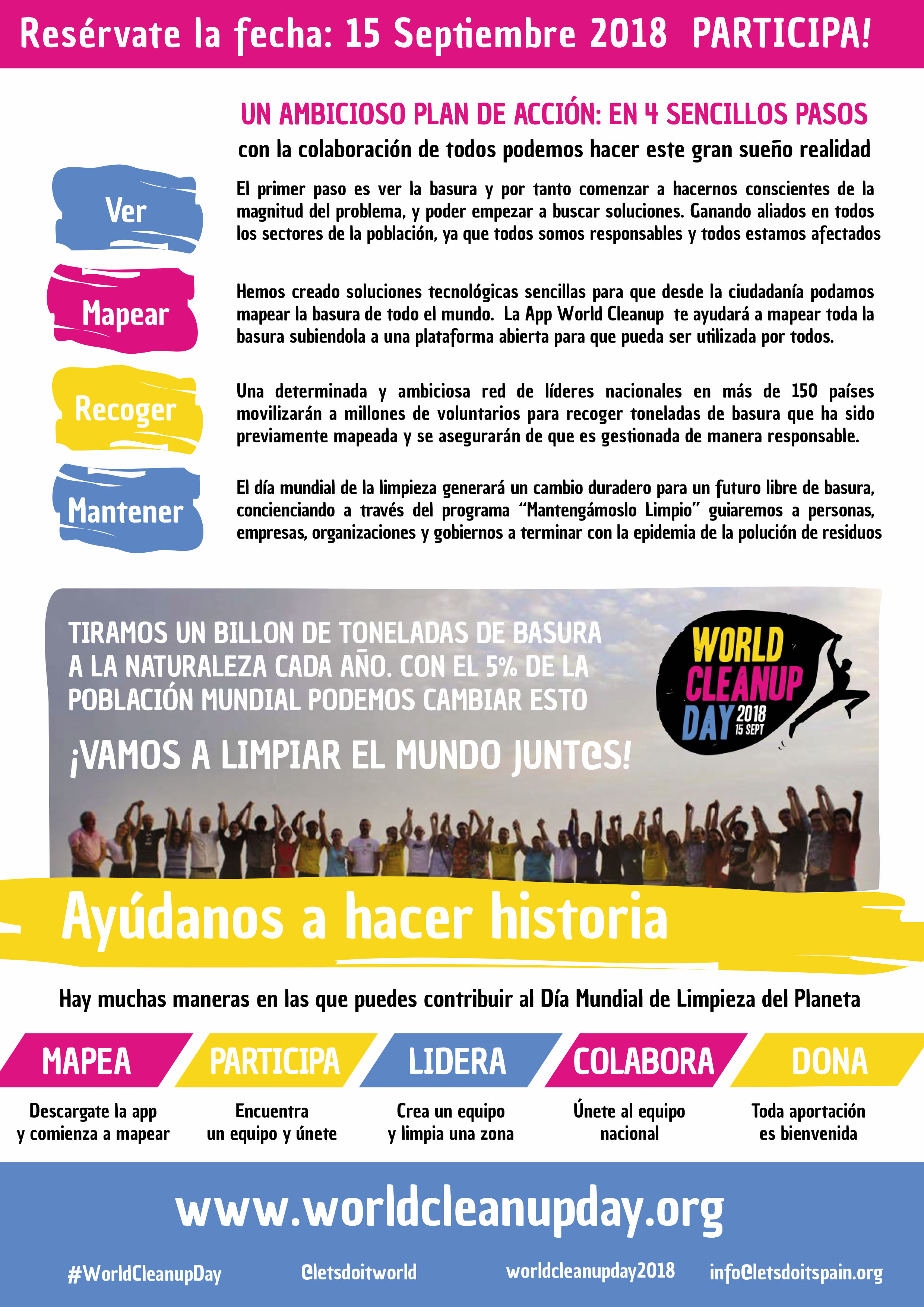El Día Mundial de Limpieza del Planeta es una iniciativa de LetsDoItSpain, una asociación sin ánimo de lucro dedicada a esta coordinación (worldcleanupday).