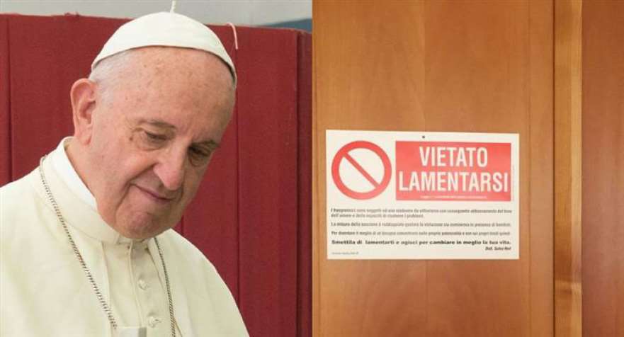 La foto del cartel de “Prohibido quejarse” colgando de la puerta del despacho del papa Francisco se hizo viral: “El papa no quiere que vengan a quejarse” decían algunos titulares.