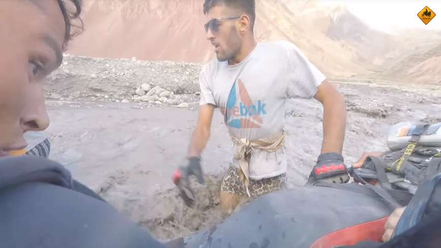 Posteriormente, un grupo de tayikos que pasaban por allí acudieron igualmente a su rescate, ayudándole a cruzar otro torrente de agua.