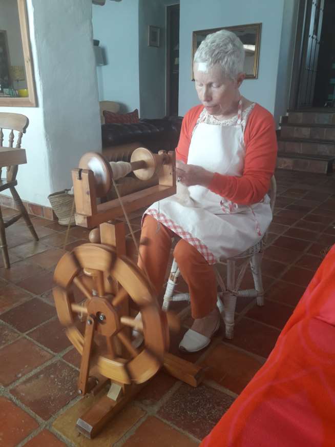 Hace quince años vio a tres mujeres hilando lana en Inglaterra, el efecto que causó en ella fue de tal magnitud que dos días más tarde uno de sus hijos le había regalado una rueca.