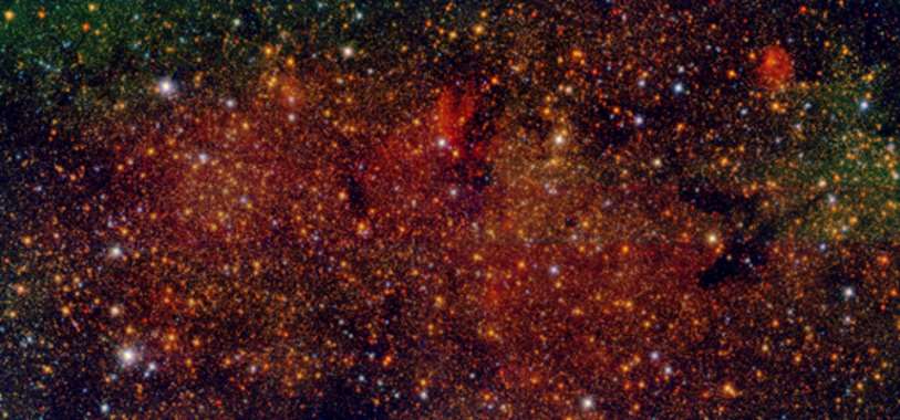 Esta región, con una densidad de estrellas muy superior a la del entorno de nuestro Sistema Solar, es representativa de otros núcleos galácticos cercanos.