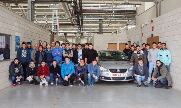 Grupo de estudiantes conoce el coche de hidrógeno de la UPNA Una treintena de estudiantes del...